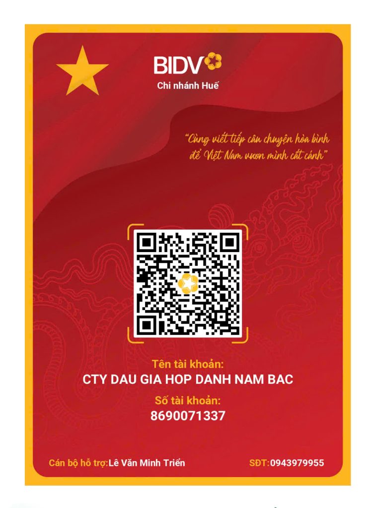 + Số tài khoản: 8690071337 tại BIDV – CN Huế